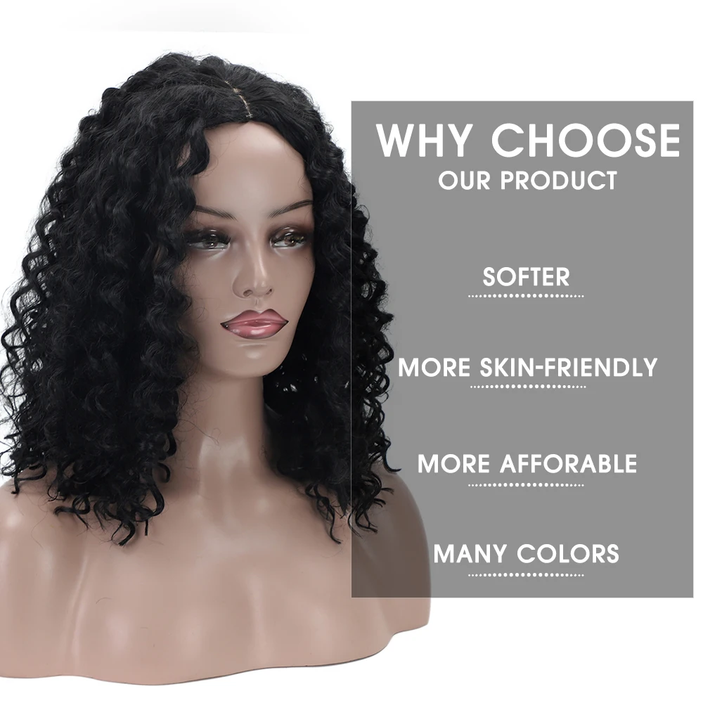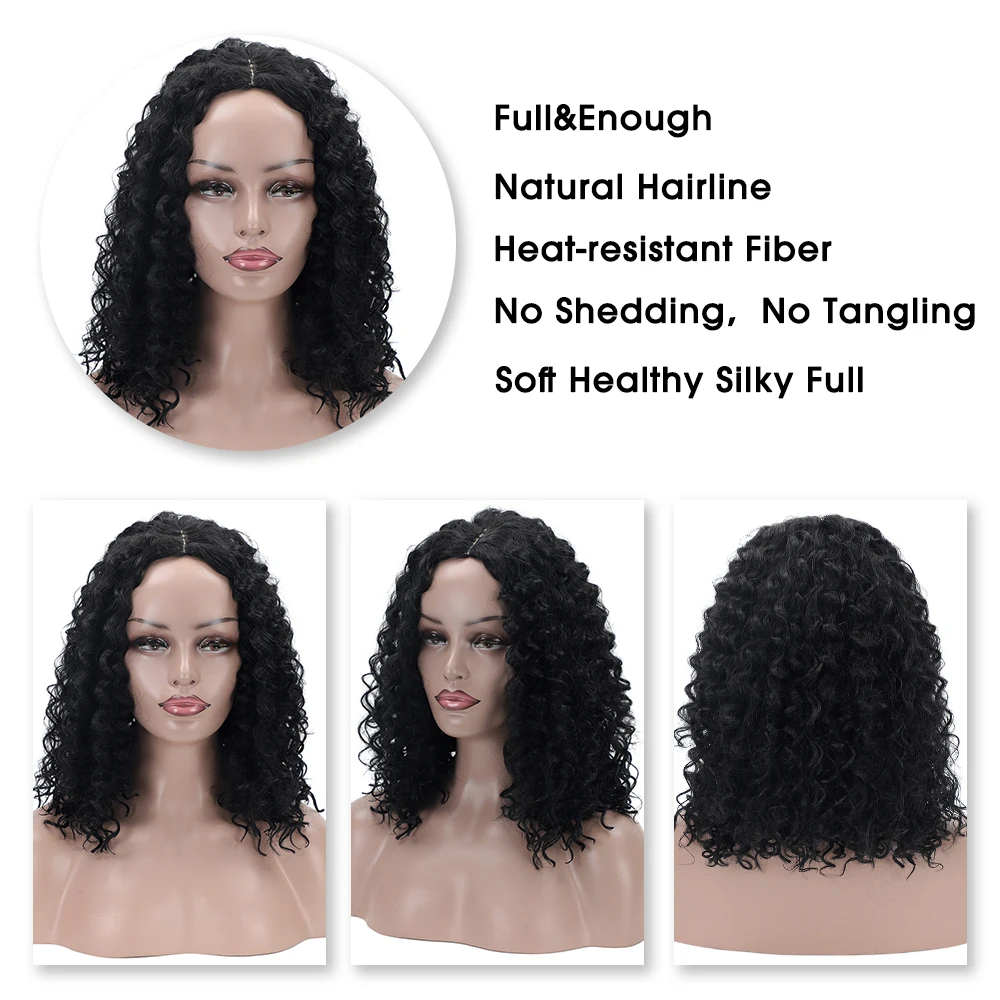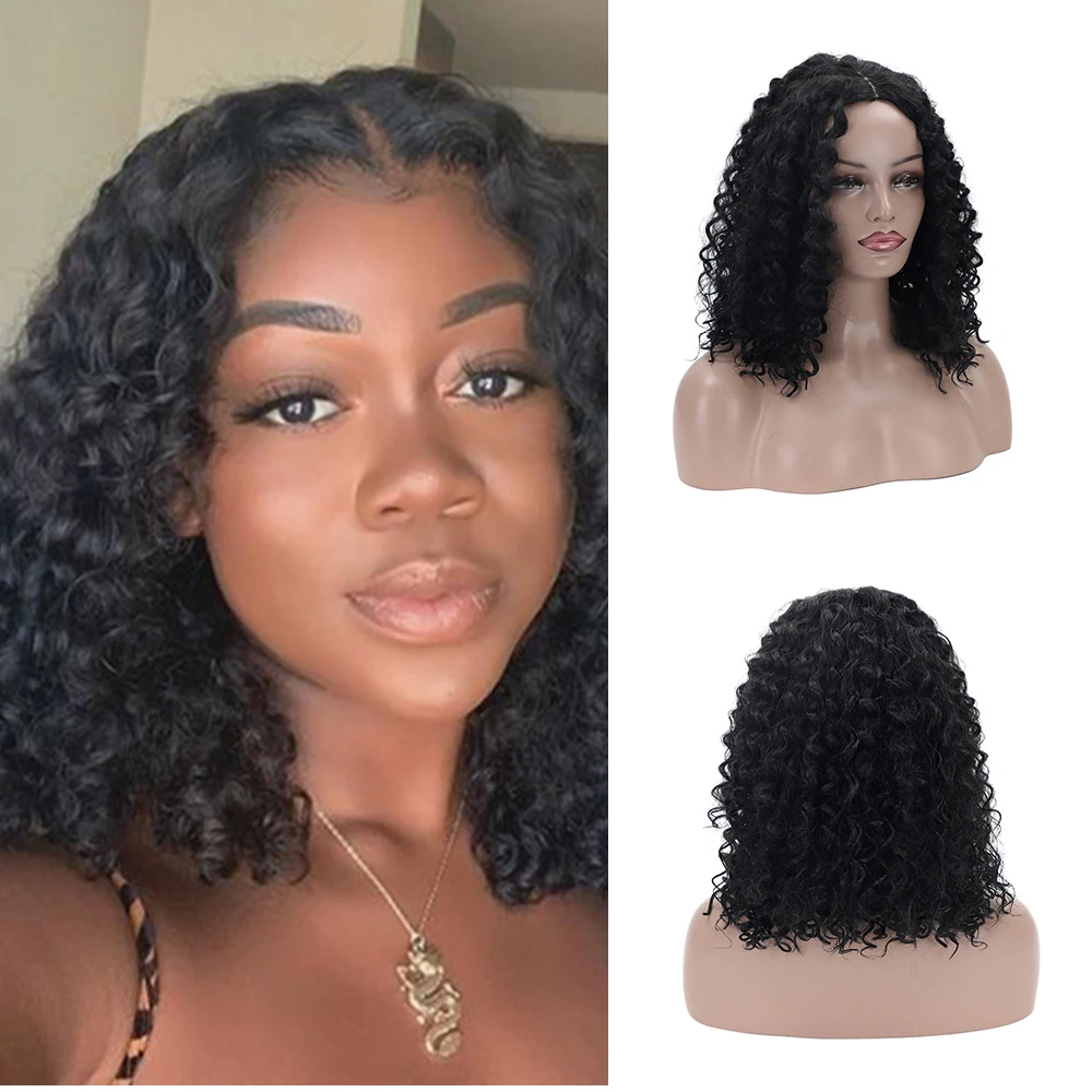 Amir Short Deep Wave Wig Synthetic Hair Wig for Black Women Natural Water Wave Wigs Medium Length Curly Hair Heat Resistant