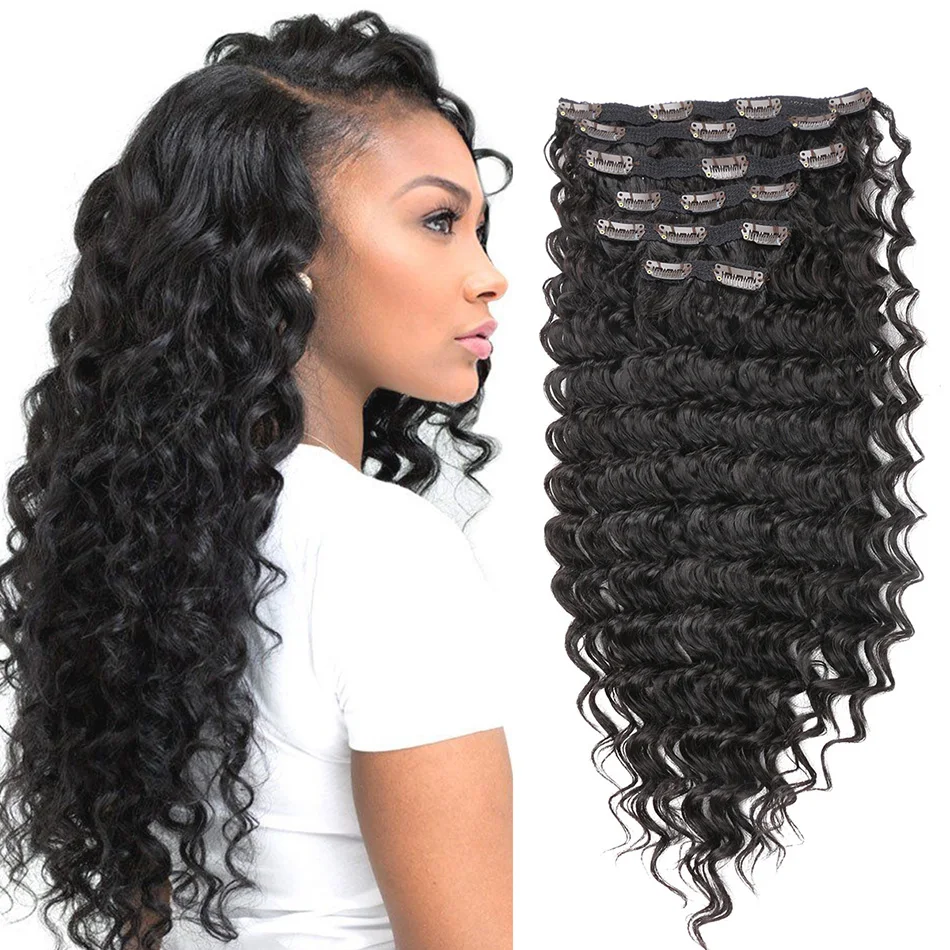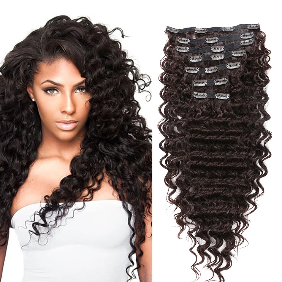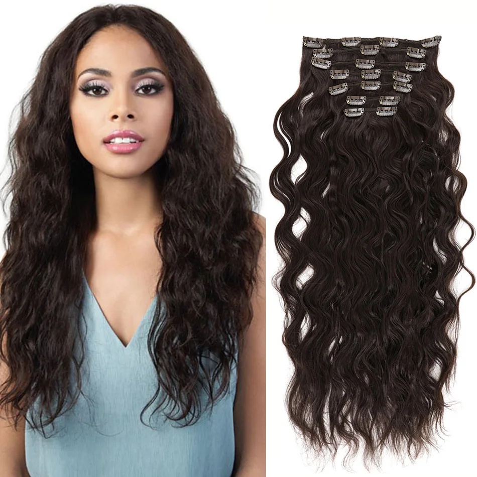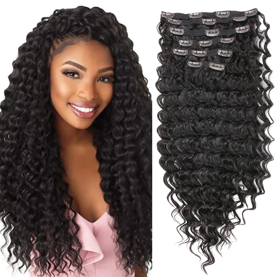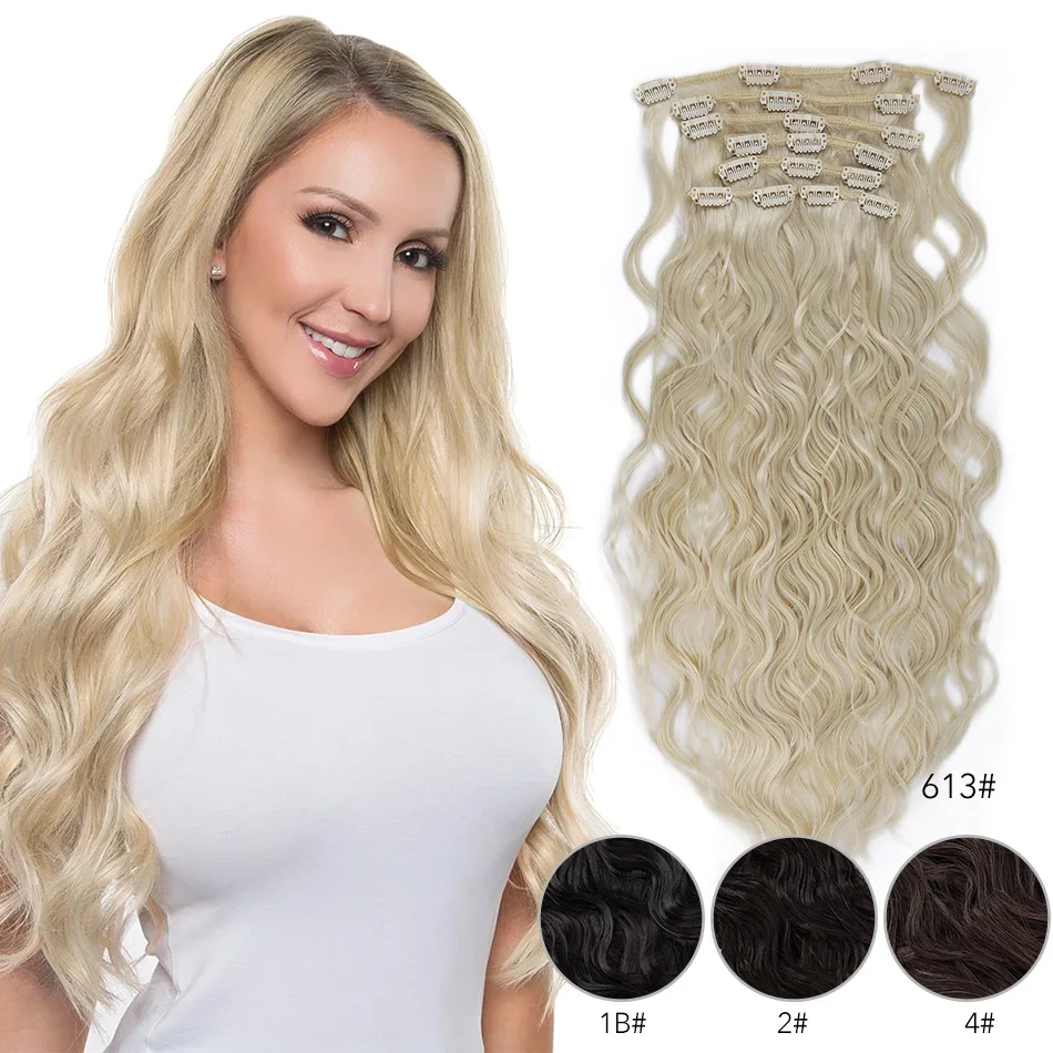 Deep Wave Clip In Hair Extension Straight Synthetic 24 Inches Long False Hair Extensions Curly Weave 613 7PCS Full Head BOOMING