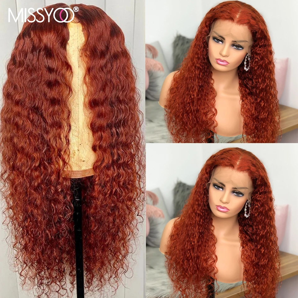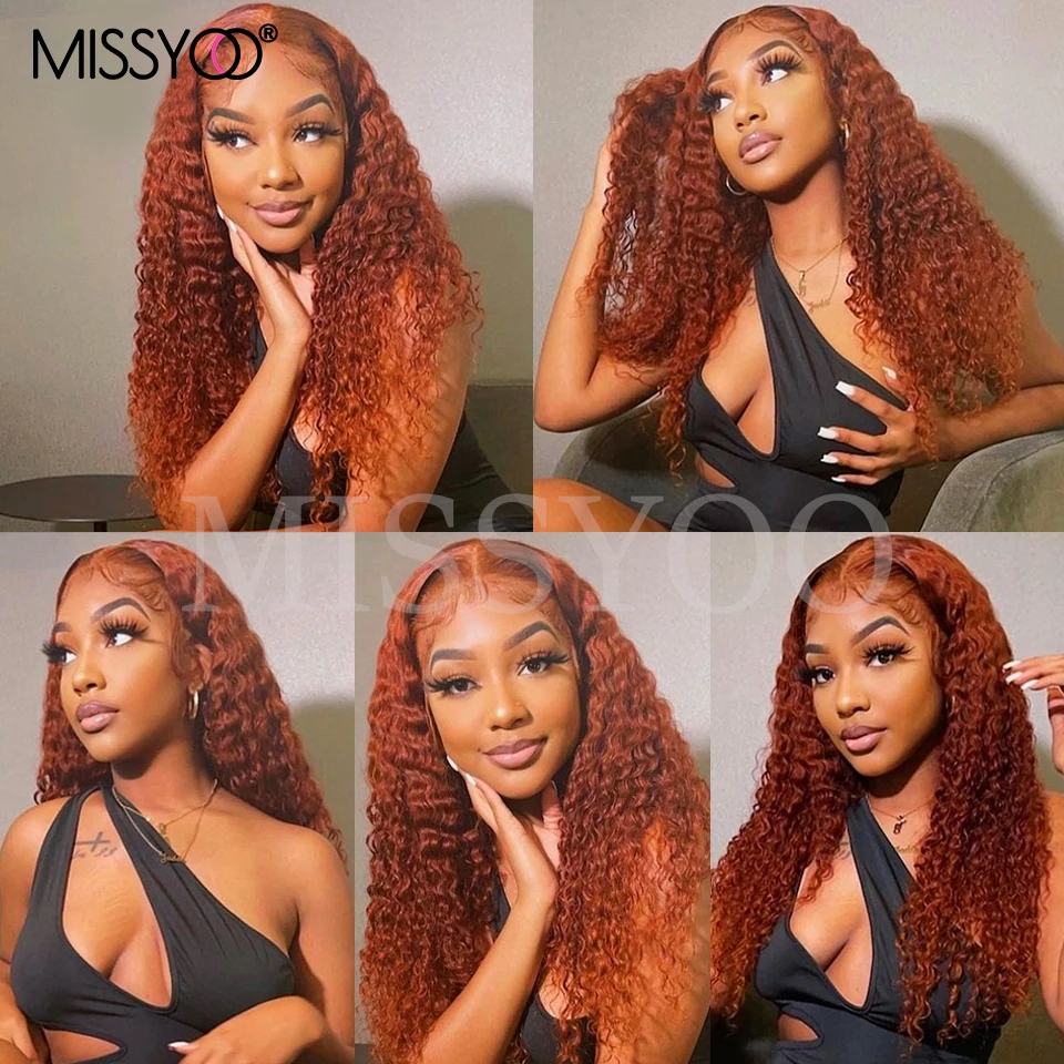 MISSYOO Orange Colored Human Hair Wigs Brazilian Hair Wigs Deep Wave Curly Wig Transparent Lace 13x1 T Part Lace For Black Women