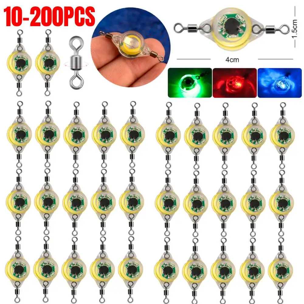 10-200Pcs Attracting Fish LED Deep Drop Mini Fishing Lure Light Underwater Eye Shape Fishing Squid Fishing Bait Luminous Lure