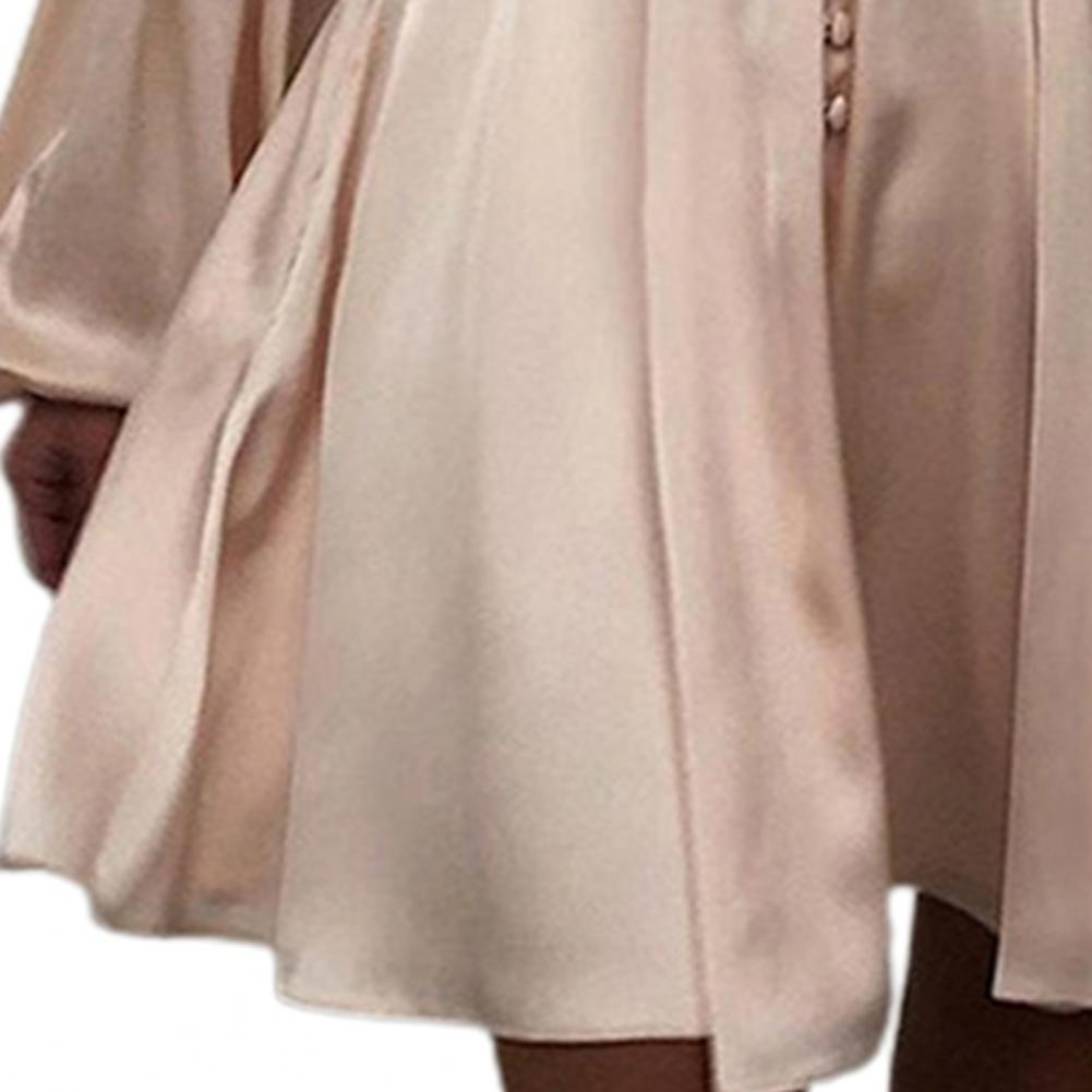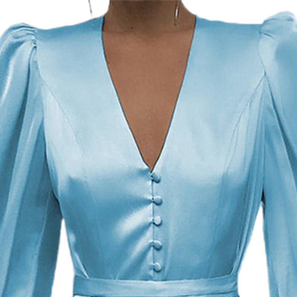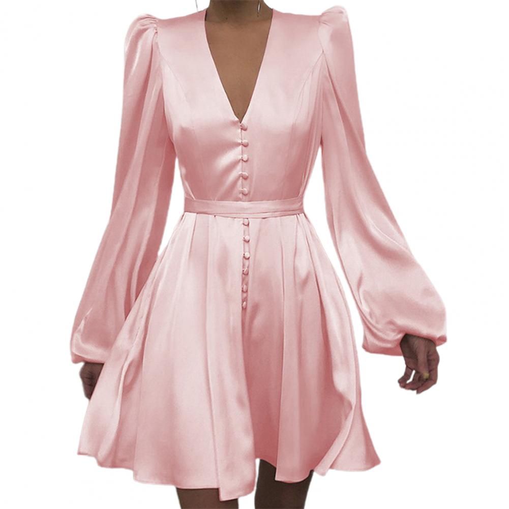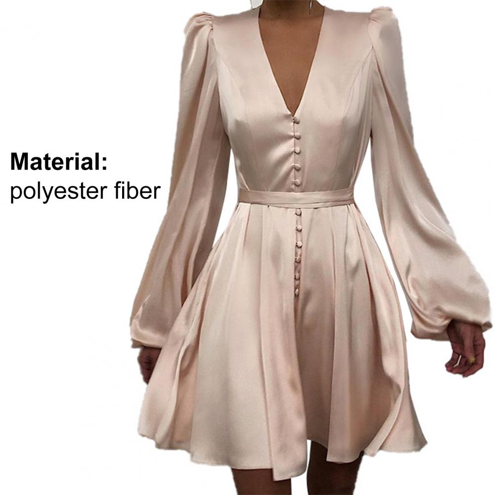 2021 Sexy Women Dress Right Shoulder Mini Sexy Full Dress Soft Solid Color Deep V Neck Print Lantern Sleeve Vintage Dress for Da