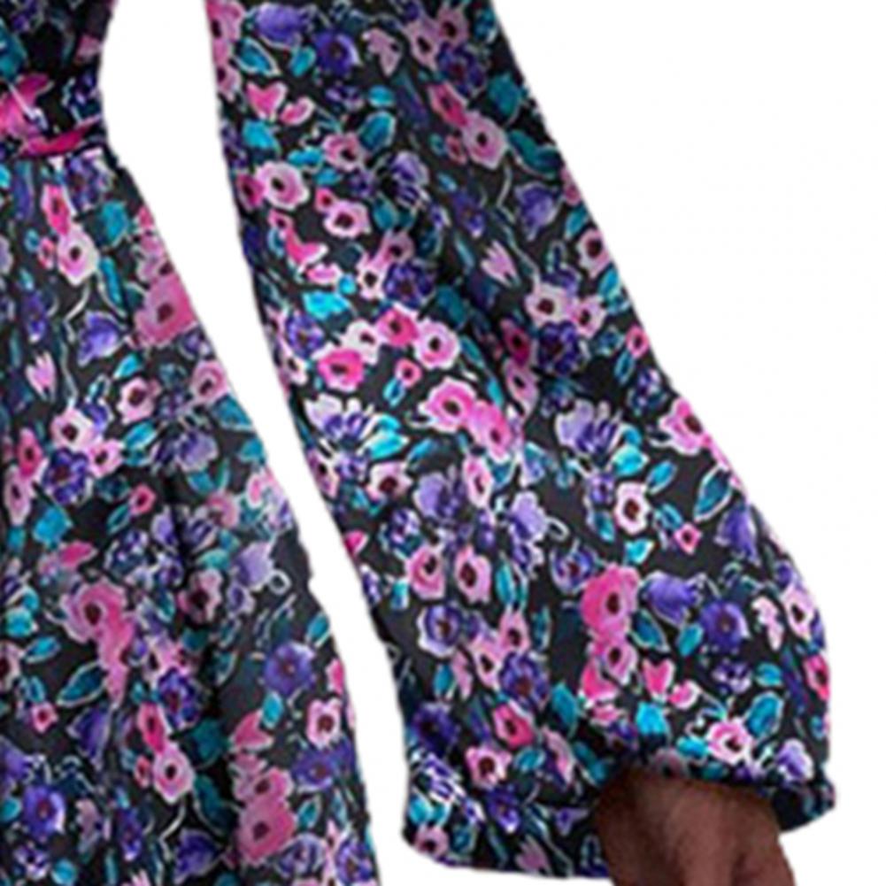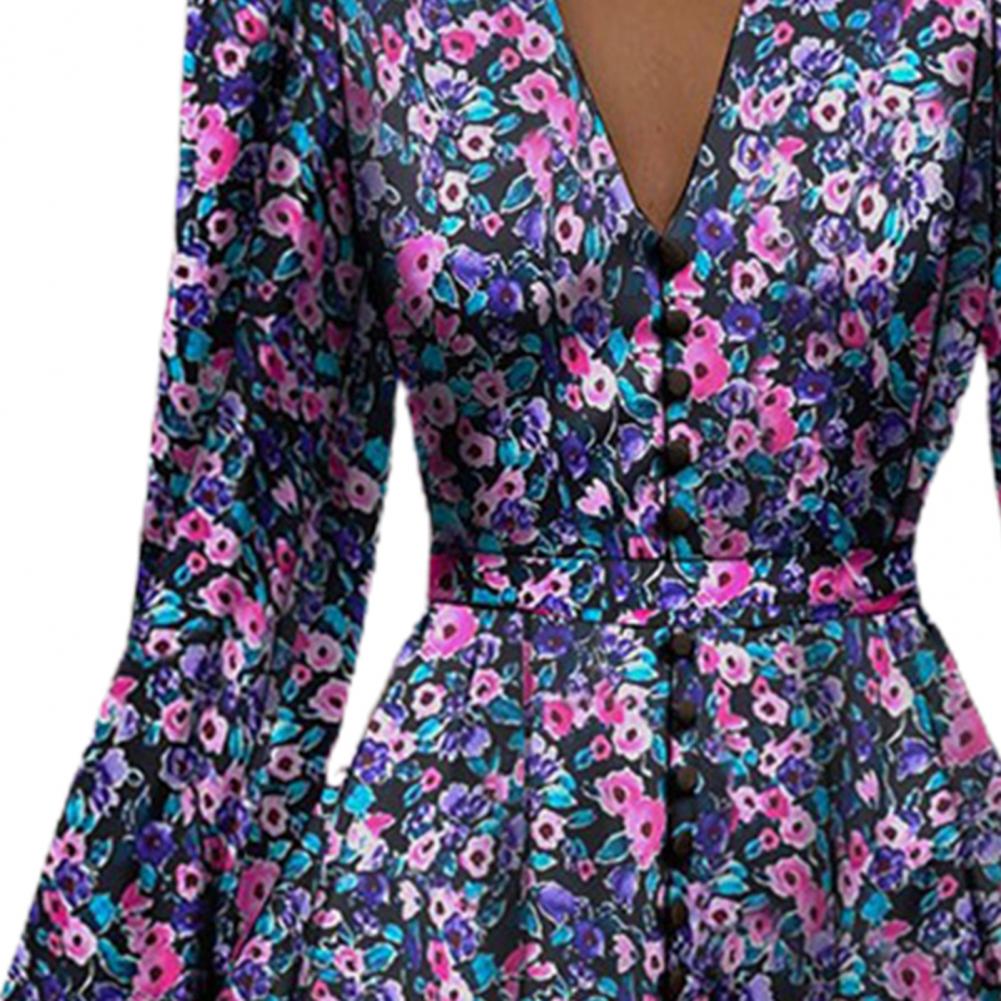 2021 New Elegant Mini Full Dress Vintage Soft Solid Color Floral Print Deep V Neck High Waist Lantern Sleeve Dress for Dating
