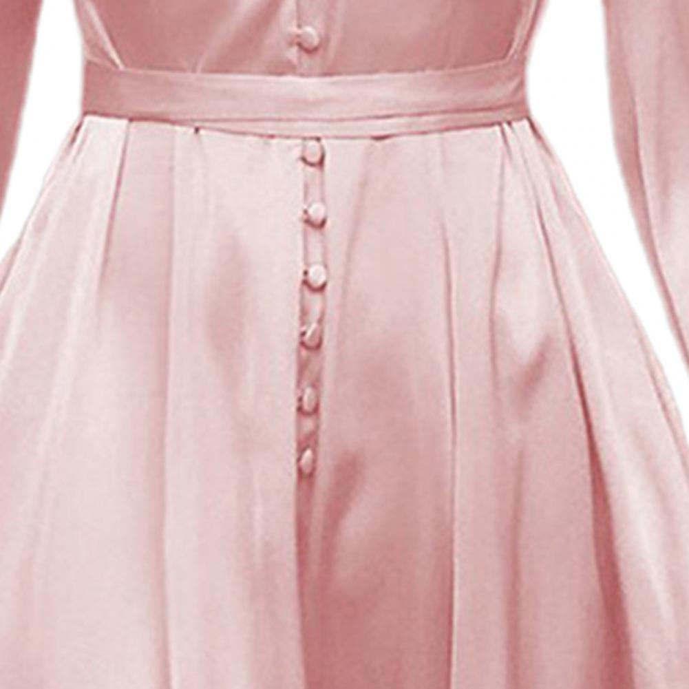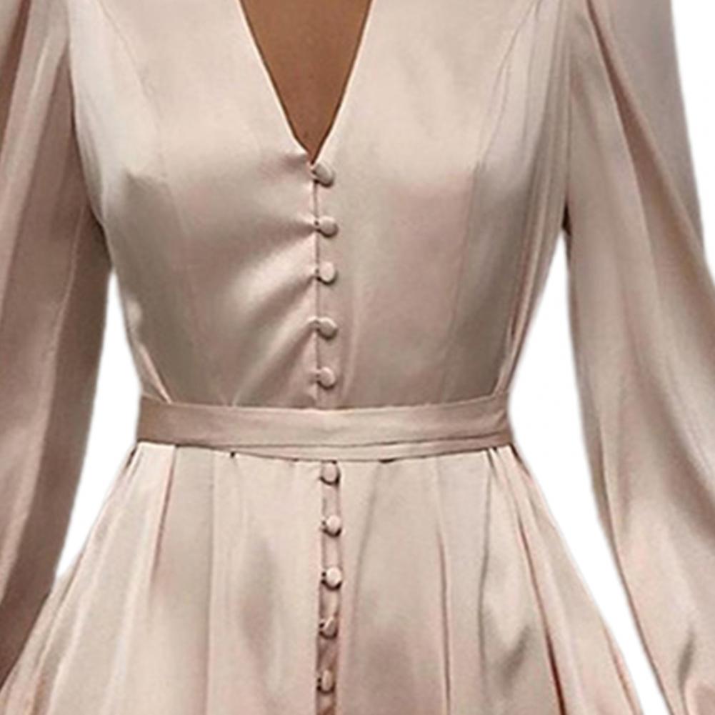 Such dress is designed with V neck, tight waist, lantern sleeve, button ornament and loose hem. And it is vintage style.