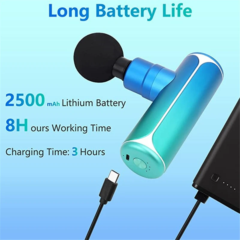 【LONG WORKING TIME】- The Compact massage gun comes with 2000mAh high-quality rechargeable Li-ion battery, which can working time up to 8Hours per charge long working time. The massager body has an LED battery indicator so you don't have to worry about power outages.