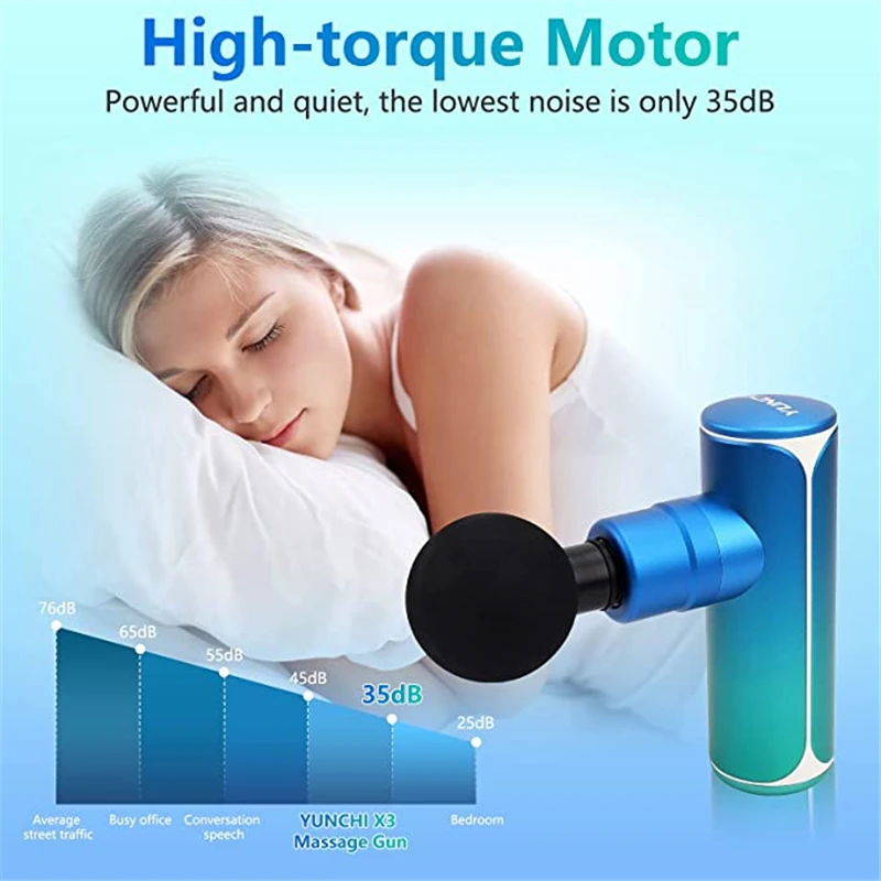 【SUPER QUIET MASSAGE GUN】- Handheld X1 Professional massager is equipped with a powerful high-torque brushless motor, brings high power but low noise (40dB - 50dB) experience. you can use it at home, office, gym without disturbing the people around you.
